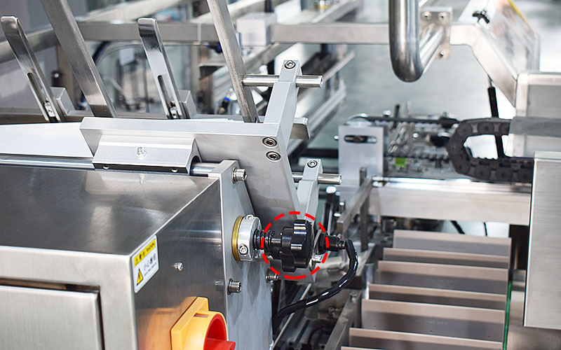 机器纸板仓调节机构;需人工去手动调节纸盒需求。