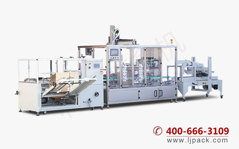 吸盘吸取式自动装箱机由我司LY-50L全自动开箱机(可选配)、自动叠盒机、LY-600L立式自动装箱机(可定制)、LY-50D自动封箱机(可选配)等连接组成。